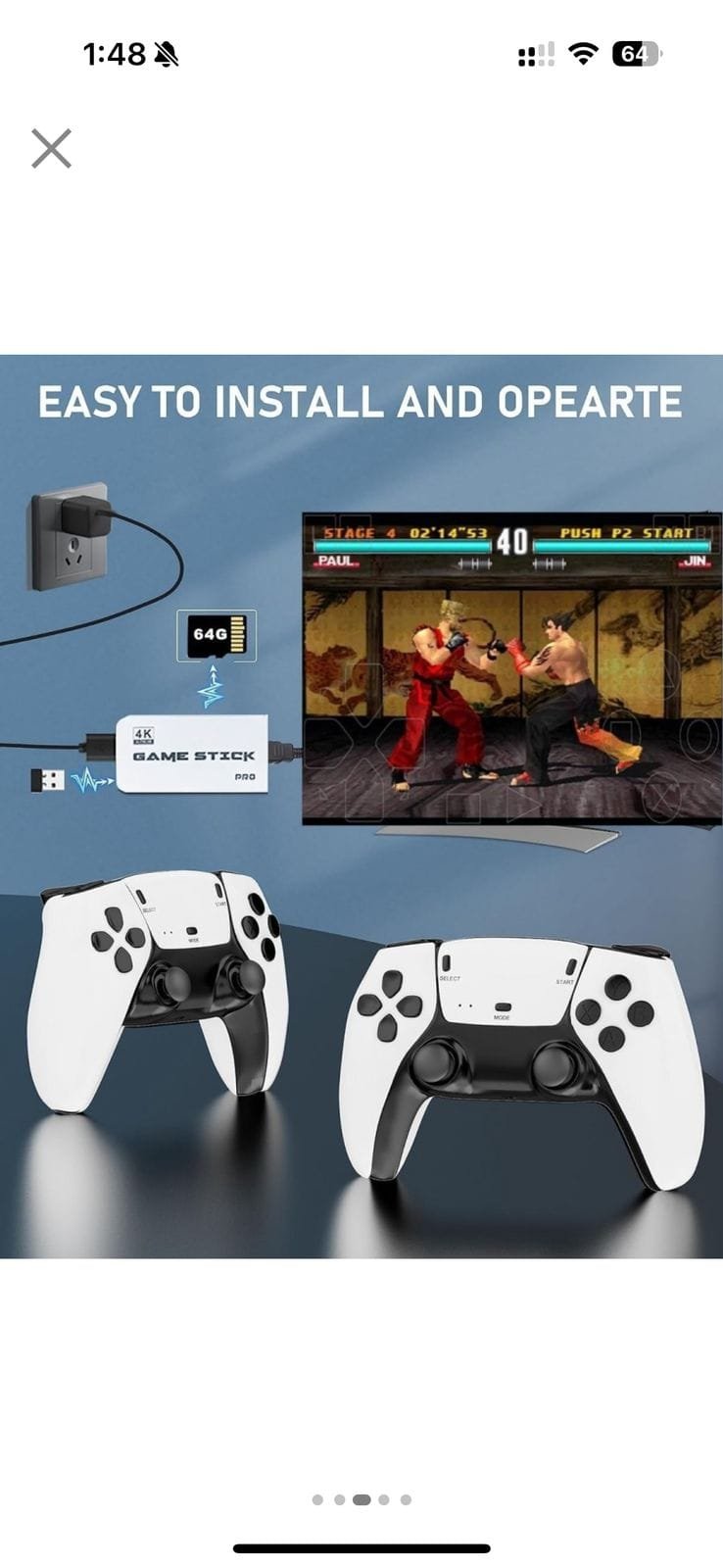 Game Stick Console Pro 2.4G Dual Wireless Game box video games 64 GB with Tekken 3, Contra & Metal Slug, Super Mario Bros, Snow Bros, Mustafa, Many More (White, 2 Gaming Consoles With Memory Stick)