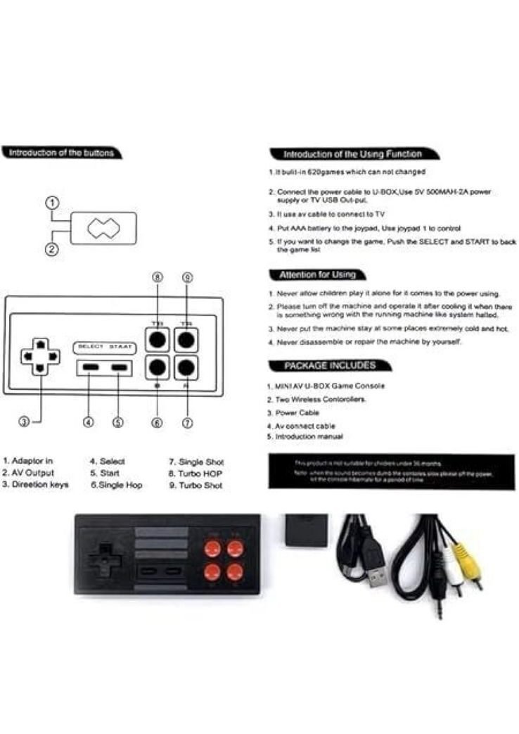 Retro Extreme Mini Game Box Wireless Classic Portable Gaming Console 1 GB with Preinstalled 500 + Classic Games, Super Contra & Many More Games, AV-OUTPUT (Black, Pocket Console, Video Game Player, TV Video Game)